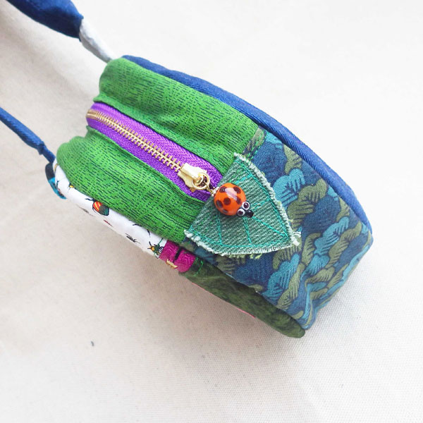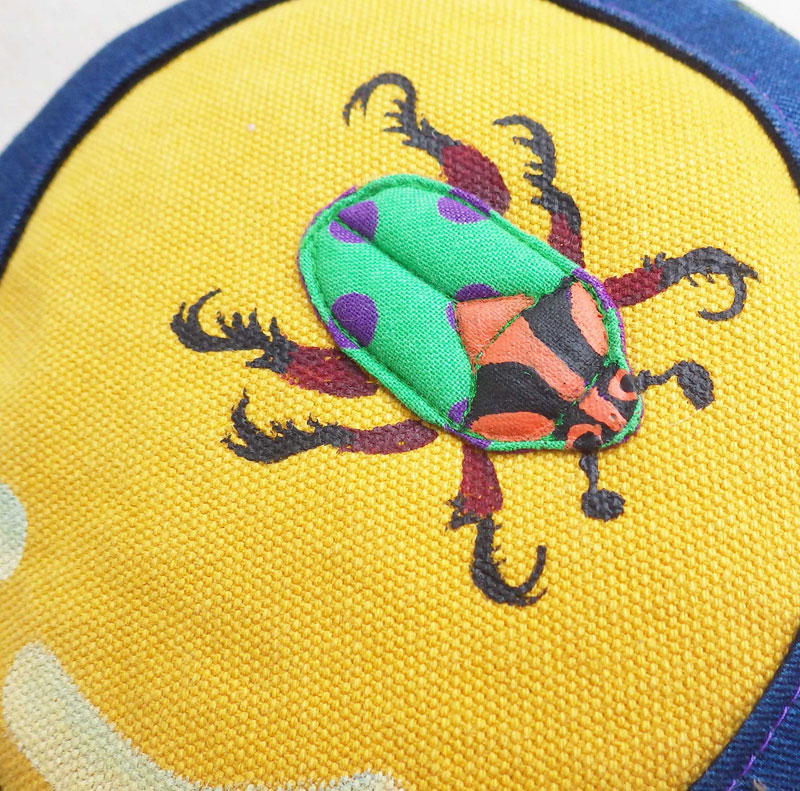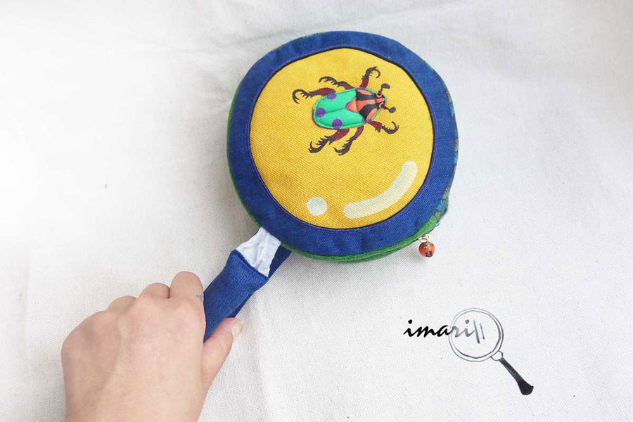 | 作品名:昆虫観察☆虫眼鏡ポーチ 02 ================== 図鑑や、昔の教科書でみつけた、 お気に入りの虫さんを 絵の具や、布で描いた【BUG】シリーズ☆ ======================== アクリル絵の具とコットン生地で作った 半立体の虫さんモチーフを虫眼鏡に見立てた 持ち手つきのまん丸ポーチに仕立てました♪ 内・裏生地は、【森の昆虫】をテーマにした生地をつかい ボタンには自作の【てんとう虫さん】ボタン ファスナーの持ち手には【てんとう虫さん】のハンドグラスビーズ を 飾りました。 ご希望の方に、コットン糸巻きのカラビナをおつけしますので、 バッグやリュックに下げたり、 キーホルダーにお使いいただけます☆ -------------------------------------------------------------------------------- 素材:・コットン生地・帆布・ガラスビーズ・他 サイズ 本体:直径約15cm マチ:約5cm 持ち手:約26cm そのほか、ご不明な点はお気軽にお問い合わせください。 |