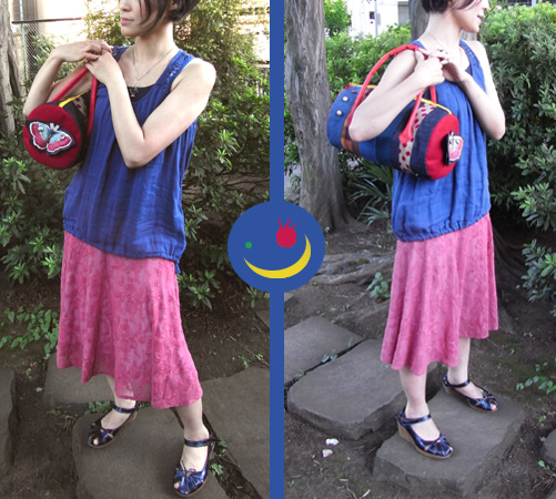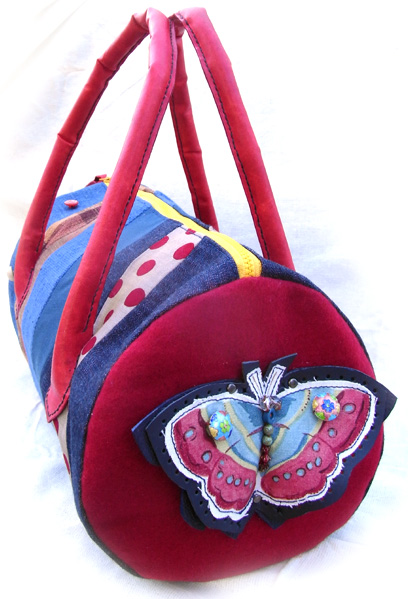 ちょうちょモチーフを飾ったビビットカラーのボストンバッグです。
