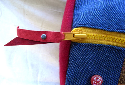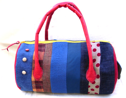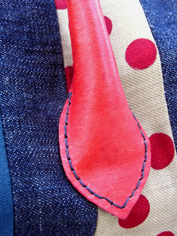自作の手縫いのもち手です。 |