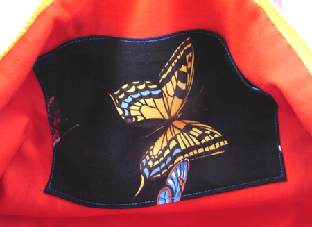 内ポケットはちょうちょのベタポケと、ファスナーポケットがついて使い勝手もよし♪