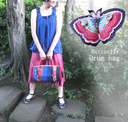 作品番号:im_bag21 作品名:ちょうちょモチーフなドラムボストンbag